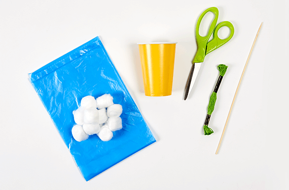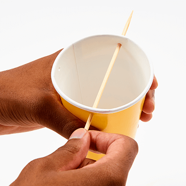Use a needle or skewer to make four equally spaced holes at the top of your cup. This will be your parachute base.