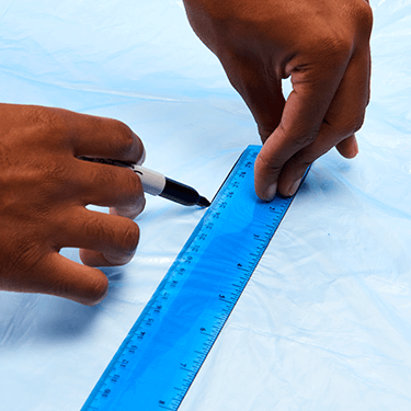 Use the ruler to draw out a 20 inch by 20 inch square on the plastic bag.