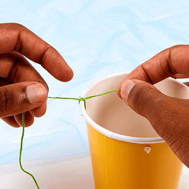 Tie the other end of each string to each hole in the cup.