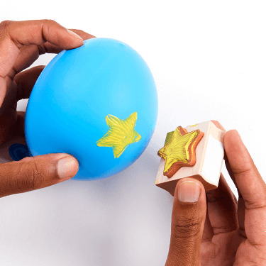 Press your balloon onto your piece of nature. The soft balloon will mold to the 3D shape and transfer the paint to it. How does your decorated piece of nature look?